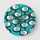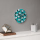 Diese Uhr hat ein modernes Design von Linien, die Kreise innerhalb von Ovalen bilden, die in Türkis, Schwarz und Weiß zusammengeschraubt sind.