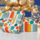 Dieses Verpackungspapier hat ein modernes Design von Ovalen und Kreise in Orange, Gold, aquamarin und Türkis auf einem weißen Feld. Woll das gleiche Design mit verschiedenen Farben? Nachricht.