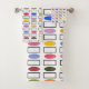 Dieses Handtuchhandtuch-Set ist in einem modernen Design aus mehrfarbigen Rechtecken und Ovalen in Blumengartenfarben gehalten.