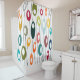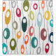 Dieser Duschvorhang hat ein modernes Design von Ovalen in Retrofarben auf kurvenförmigen schwarzen Linien.