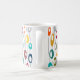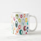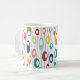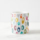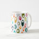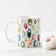 Diese Tasse hat ein modernes Design von Ovalen in Retrofarben auf kurvigen schwarzen Linien.