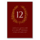 Elegantes ovales Kranzblatt mit goldenem Effekt auf dunkelrot mit weißer Tischnummer für Hochzeiten. Bearbeiten Sie diese Karte mit Ihren eigenen Namen und Ihren eigenen Hochzeitsdetails und Tischnummer. Sie müssen die Nummer zu jeder Tischnummer, die Sie brauchen, ändern und sie zu Ihrem Warenkorb hinzufügen, eine nach der anderen. Mengenrabatte können gewährt werden, wenn Sie alle Artikel in Ihren Warenkorb legen. Weitere passende Artikel sind verfügbar. Entworfen von www.mylittleedenweddings.com