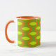 Cooles Muster von hellgelben grünen Ovalen und kreisförmigen orangen vertikalen Streifen auf grünem Hintergrund