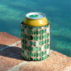 Diese kann kühler hat ein modernes Design von ovalen Hälften, einige solide und einige gestreift, in grünen Farben auf einem Feld von blassorange.