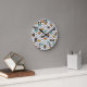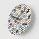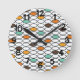 Diese Wanduhr hat ein Retro-Design von Ovalen in Weiß, Braun, Blau und zwei Orangetönen in den 70er Jahren.