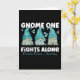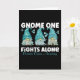 Ovarialkarzinom-Design mit aquamarinen Gnomen mit den Worten "Gnome one fights Alone". Für jeden, der gegen Eierstockkrebs kämpft. Kann während des Monats der Krebsaufklärung getragen werden.
