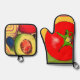 Potholders with bold vegetables art. Bright and colorful.
