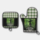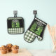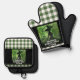 Gemalt Wickly Good Hexe Green Gingham Kariert Oven Mitt und Pot Holder Set - Dieses Oven Mitt und Pot Holder Set zeigt ein grünes und schwarzes Gemälde einer Hexe in einem verzauberten Wald auf einem karierten, weiß und grün gingham karierten Muster. Entworfen für diejenigen, die dunkle Fantasie und spukhafte Dinge Lieben.