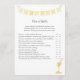 Ein lustiges Spiel für die Babydusche ist das Over and Under Spiel. Dieses Spiel enthält oben ein gelbes Banner und einen Honigflossen. Auf der Rückseite ist ein Junge Teddy Bär, der auf einem Honigfass aufbaut und eine Honigbiene mit Vorlagen beobachtet.