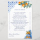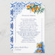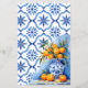 Talavera blue chinoiserie caramic Vase mit Orangen Zitrusfrüchte Brautparty Spielkarte, Spanisch Mediterrane Talavera Fliesen Sommerspiele Zitrusfrüchte Brautparty Spiele