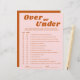 Das "Over or Under Last Disco Brautparty Game" fügt Ihrem Brautparty oder Junggeselinnen-Abschied einen Hauch Retro-Spaß hinzu. Als Diskothek ist es das ideale Unterhaltungsprogramm für eine boho Disco oder eine tropisch inspirierte Feier. Dieses Spiel mit seinen lebhaften Farben Rot, Rosa und Orange spiegelt das Wesen der Retro-Diskothek wider und ist somit die ideale Wahl für ein letztes Disco-Brautparty oder ein Retro-Event. Egal ob Sie sich über oder unter den Augen aufhalten, es wird sicher zu Lachen und lebendigem Wettbewerb unter Ihren Gästen führen, was unvergessliche Erinnerungen bis zum großen Tag schafft.