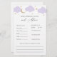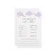 Baby shower advice and predictions card featuring watercolor purple clouds and gold stars. A fun way to interact with guests during your baby shower. Matches the Over the Gold Moon Collection in the Adore Paper Co Zazzle Shop.