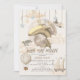 This whimsical boho/bohemian gender-neutral "we're over the moon" baby shower invitation features the full moon, stars, and clouds with a flying whale, stingray, turtle, hot air balloon and flying ship. The reverse side features a gray beige/greige background with star patterns. Personalize it for your needs. You can find matching products at my store.