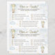 Im Rahmen des Baby Shower Game müssen Sie erraten, ob die Zahlen in den einzelnen Aussagen vorbei, unter oder korrekt sind. Der Gast mit den besten Antworten gewinnt! Artikel kann so verwendet werden, wie es ist oder angepasst werden, um die Paare mehr persönlich. Der Single war auf der Seite. Wie Luftballon Design, ideal für Baby oder Mädchen oder für eine Dusche, wo das Geschlecht noch nicht bekannt ist.