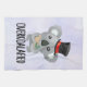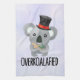 Ein Küchentuch mit einem lustigen und humorvollen Design mit einer Illustration eines niedlichen Koala mit einem schwarzen Hut mit dem Typografie-Text unten, der überkoalfiziert sagt.