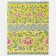 Fleecedecke mit einem Tornflormuster aus Owen Jones' A Study of Chinese Ornament. Dieses Muster zeigt auf einem gelblichen Hintergrund die Pfennigfugen und andere Blume.
