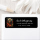 Address labels with a cool looking owl with a piercing stare. A full moon in the back with a garden of red flowers.