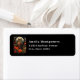 Address labels with a cool looking owl with a piercing stare. A full moon in the back with a garden of red flowers.