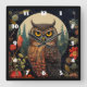 Owl at Night with a Full Moon Quadratische Wanduhr
