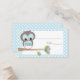 Koordination von Platzkarten in meinem kleinen Babyblauen Uhu-Design mit einem pastellblauen und weißen Punkt Hintergrund.
