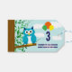 Schau, wer Geburtstag hat! Blauer Eule in einer Waldlandschaft mit blauen Himmeln und flauschigen Wolken