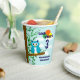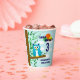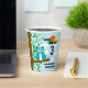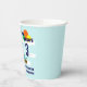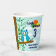 Schau, wer Geburtstag hat! Blauer Eule in einer Waldlandschaft mit blauen Himmeln und flauschigen Wolken