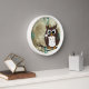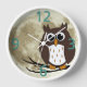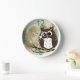 Cartoon Owl Auf einem Baumstamm vor der Vollmond-Wanduhr.