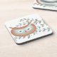 Cork Untersetzer mit handgemälztem Aussehen. Nachtschwärmer-Kunst/-bild, ursprünglich in Acryl auf Papier in Braun und Aqua geschaffen, um ihm einen Retro-Look zu verleihen. Die Eule sitzt auf den Extremitäten Aqua und Gold.