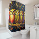 Dieser Duschvorhang hat ein häulliches Design darauf.
