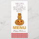 Owl auf Pumpkin Gingham Pattern Menü Rack Cards. Ideal für Restaurants, Hochzeiten, Halloween-Events und Geburtstagsfeiern.
