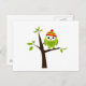 Owl Owls Bird Green Hat Schnee Niedlichen Baum Car Postkarte