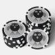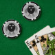 Dieses phantastische Set von Poker-Chips zeigt eine gruselige Eule mit riesigen, wölkenden Augen und verdrehten Klauen. Sein Körper ist schwarz und seine Flügel, Ohren und Klauen und Schnabel sind grau. Diese gruselige Eule kann sich unter dem Deckmantel der Dunkelheit unsichtbar verstecken und ist der Stoff, aus dem Albträume bestehen.
