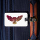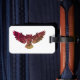 Dieses Design ist die Kontur einer Eule mit einem roten bis beigen Farbverlauf und die Silhouette eines Baumes im Inneren.
