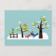 Owls Vögel Winter Schnee Niedlicher Baum Cartoon Postkarte