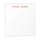 Own Name Decorative Chic Plain Simple Red White Notizblock