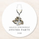 Personalisierte Oyster Pearl Party Themenpapiere Untersetzer für Ihr nächstes Oyster Pearl Party oder Meeresfrüchte Veranstaltung. Es zeigt eine Aquarellmalerei, die Wein und Austern illustriert.