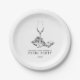 Personalisierte Oyster Pearl Party Themenpapiere Teller für Ihr nächstes Oyster Pearl Party oder Meeresfrüchte Veranstaltung. Es zeigt eine Schwarz-Weiß-Illustration von Wein und Austern.