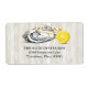 Eine große Auster mit Zitronenkeil-Funktion an der Spitze dieses Adressetiketts. Es ist ein vielseitiges Label, das für die meisten nautischen Themen verwendet werden kann, wie z.B. ein Restaurant oder roher Bar, besondere Anlass oder um ein Küstenbild, Strand-Look zu vermitteln. Fügen Sie einen beliebigen Namen und eine beliebige Adresse vor dem Hintergrund der weißen, verwitterten Holzplatte ein. Verfügbar mit passenden Produkten.