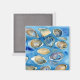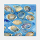 Dieser Oceancore Magnet zeichnet sich durch die Aquarellkunst von Austern und Muscheln vor einem abstrakten blauen Hintergrund aus; ein Muster von Biventilen für nautische, Küsten- und Meeresliebhaber!