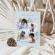 Eine elegante Küsten-Ferienkarte für Strand- oder Küstenbewohner mit 4 Fotos in einer Collage, die mit blauen Aquarellkorallen, Seestern und Botanikalen geschmückt ist. "Seas & Greetings" oder Ihre Wahl des Urlaubs Gruß erscheint an der Spitze, mit Ihrer Familienunterschrift und das Jahr am unteren links.