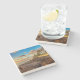 Ozean-Sonnenuntergang über Felsen und Palme | Steinuntersetzer