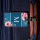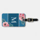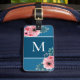 Einfache ozeanblaue Gepäckmarke mit rosa und grüner Blume. Elegant, feminin und hübsch. Anpassen mit dem Initial. Ideal für Muttertagsgeschenk, Geburtstagsgeschenk oder Geschenk für Lehrer und Kollegen.