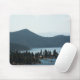 Ein Foto der umliegenden Kiefernwälder bedeckten Berge, die am Ende des Tahoe-Sees enden.