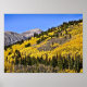 Glorreiche goldene Blätter bedeckt einen Hügel in der Nähe des Skigebiets Breckenridge, Colorado. Das ist die übliche Herbstfarbe, die man in den Colorado Rockies sieht. Einer der Gipfel der Zehn-Mile-Range steigt in der Ferne.