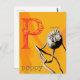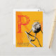 Schwarz-weiß getrockneter Mohn auf lebhaftem gelbem Hintergrund mit dekorativem roten "P". Ein beeindruckendes Bild mit Blumenmohn in Englisch und Latein. Ein Pop der Freude, mit jedem zu teilen!