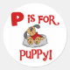 P ist für Puppy Tshirts und Geschenke Runder Aufkleber