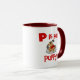 Roter Text lautet "P is for Puppy" auf diesen niedlichen Welpendesign-T - Shirt, Tasse, Totentaschen, Karten und mehr, großartig für jeden, der Hunde Liebe hat!