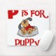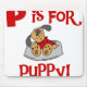 Roter Text liest "P ist für Welpen" auf diesen niedlichen Welpenentwurf T - Shirts, die Tassen, Taschentaschen, Karten und mehr, die für jedermann jedes möglichen Alters groß sind, das Lieben verfolgt!