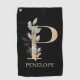 Letter P monogramm floral. Letter P in goldbrauner Textur mit grünen Aquarellfarben Blätter, Blume Blüten und Goldstaub. Personalisiert mit Namen in passendem Schriftart.