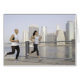 AssetID: 126191688 / {Diane Collins and Jordan Hollender} / Paar, das auf einem Pier mit Stadt im Hintergrund läuft